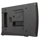 The speaker includes DEEP DSP for extended bass, GuardRail protection to prevent clipping, and an auto-standby mode for energy savings. It offers versatile XLR and PowerCon connectors, along with a Phoenix connector for daisy-chaining.