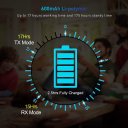 It will offer 15 hours in TX mode, 17 hours in RX mode on one charge, you also can use it while charging. True wireless transmitter.