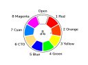 - Color generation: Color wheel with 8 dichroic filters plus open
