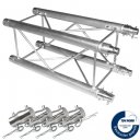 The DT24 series is a 4-point-trussing-system with conical coupler (spigot), trusspin and safety clip. The advantage of the quick connector system lies in the fact that it closes force-locking the belt tube and allows rapid assembly and dismantling.