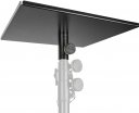 This practical attachment fits on every 35 mm tripod tube and makes a usual speaker stand a projector stand. With 42 x 38 cm footprint, it is also ideal for laptops, blue-ray players, studio monitors and other devices weighing up to 30 kg. The stable construction is completely made of steel, the edges of the beamer adapter plate are thereby pulled up to increase the bending-strength 10 mm and prevent a fall of the devices.