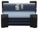 Active DI box in sturdy metal housing (aluminium/steel) with corner protectors, silver-blue/ metallic, internal 9 V battery (indicator blinks during operation) which is automatically switched off when phantom power is used (LED indicator is on continuously).Extremely low battery usage. Battery: 9 V block (not included).