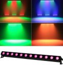 ADJ UB 12H — это 41,75-дюймовый (1 метр) профессиональный линейный светильник для помещений с двенадцатью 6-ваттными светодиодами RGBAW+UV HEX, обеспечивающий яркое смешивание 6 цветов с углом луча 40 градусов для подсветки сцен и стен. Прочный корпус с системой Quick Align позволяет создавать равномерный световой поток без разрывов. Светильник оснащен встроенными цветовыми макросами, регулируемой яркостью (0–100%) и стробоскопом, а управление возможно через 4-кнопочное LED DMX-меню или беспроводной пульт UC-IR (в комплекте).